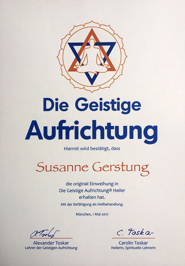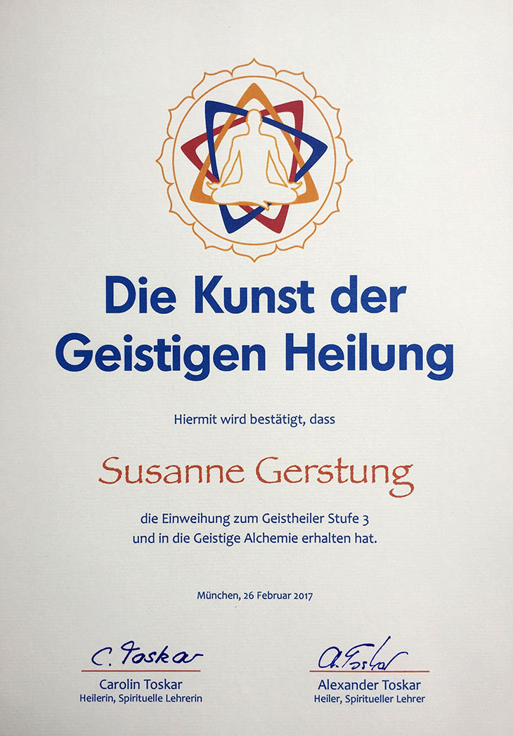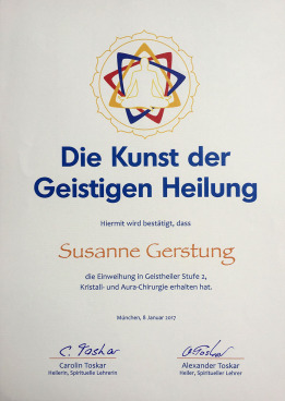 zum Geistheiler Stufe 2, sowie der Kristall- und Aura-Chirurgie: